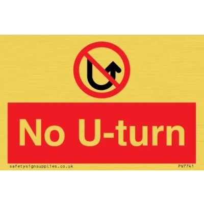 P906 : No aerosol This sign is made from vinyl gold sticker Gold metal effect sticker for flat, clean surfaces. Not for rough, plastic, or dusty surfaces. A8 landscape Sign Text: No U-turn