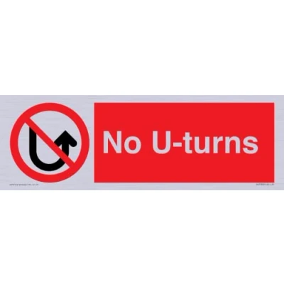 P508 : No U-turns This sign is made from vinyl silver sticker 31 landscape Sign Text: No U-turns