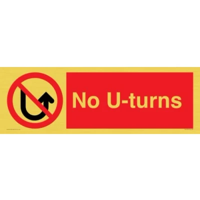 P508 : No U-turns This sign is made from vinyl gold sticker Gold metal effect sticker for flat, clean surfaces. Not for rough, plastic, or dusty surfaces. 62 landscape Sign Text: No U-turns