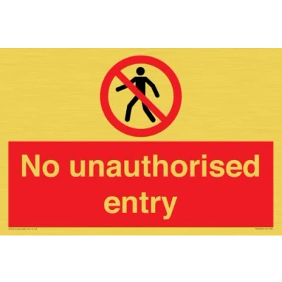 P004 : No thoroughfare This sign is made from vinyl gold sticker Gold metal effect sticker for flat, clean surfaces. Not for rough, plastic, or dusty surfaces. A4 landscape Sign Text: No unauthorised entry