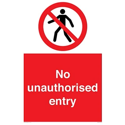P004 : No thoroughfare This sign is made from vinyl / sticker Air Release vinyl makes it easy to stick to flat, clean surfaces without bubbles. Not for rough, plastic or dusty surfaces. A2 portrait Sign Text: No unauthorised entry