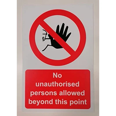 No Unauthorised person allowed beyond this point sign 3mm Aluminium Composite ultra hi-durability sign 300mm x 200mm high durability Digitally printed and laminated for extra durabillity