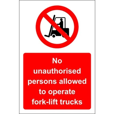 No unauthorised persons allowed to operate forklift trucks Safety sign Self adhesive sticker 150mm x 100mm Digitally printed and laminated for extra durability Remove backing film and apply to dry, smooth, oil free surface., Manufacturer: KPCM Display ltd
