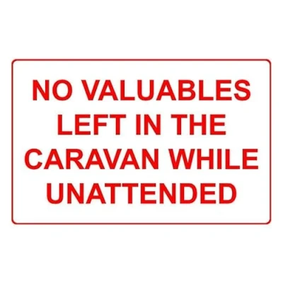 No valuables left in the caravan while unattended safety sign Self adhesive sticker (300mm x 200mm)