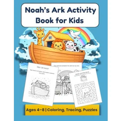 Noah’s Ark Activity Book for Kids Ages 48: Coloring, Tracing, Mazes, Word Search & Fun Bible Learning Activities