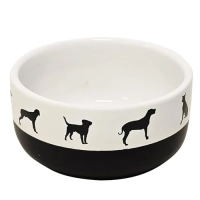 Nobby Dog Ceramic Bowl Shape White/Black Diameter 16 x 7.5 cm 1,000 ml