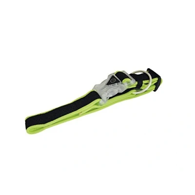 Buckle lights up, flashing frequency can be adjusted to 3 different positions. Splash-proof. Visible up to approx. 300 m. Locking technology prevents excessive load on the buckle. With soft neoprene lining.