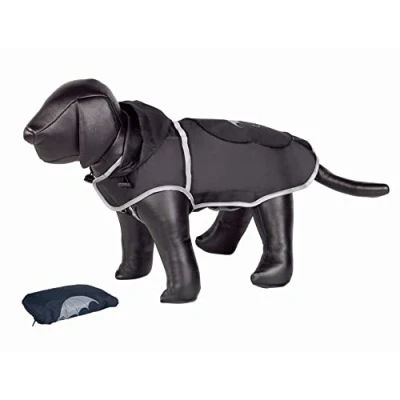 Protects against rain and cold With reflective stripes and velcro fastening added for safety The velcro allows easy and rapid application The dog coat comes with matching bag Back length: 40 cm