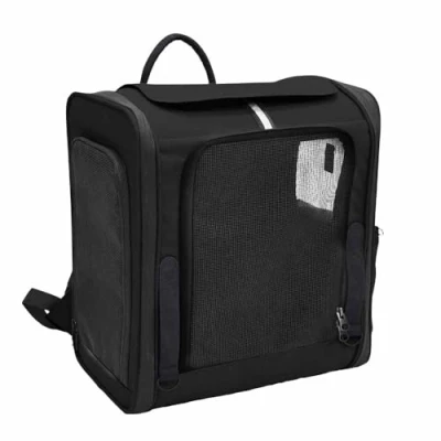 AmazonDurable microfibre, washable For animals up to approx. 8 kg Good air circulation thanks to mesh inserts on four sides 1 utensil compartment plus loops and eyelets for attaching larger utensils Loop for attaching to car seat and trolley