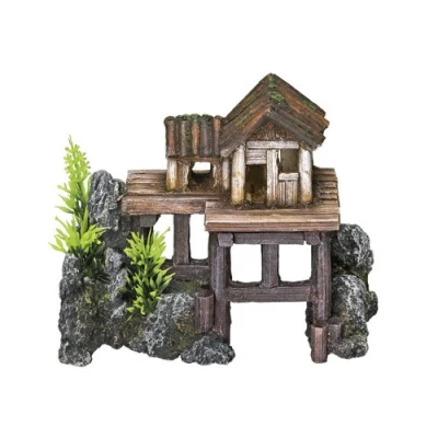 Nobby Wooden House with Plants Aquarium Ornaments, 15.5 x 8 12 cm