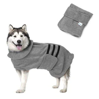 Nobleza Dog Dressing Gown L Bathrobe Towel Robe Drying Coat Super Absorbent Pet Puppy Fast Adjustable for Large Cat Grey