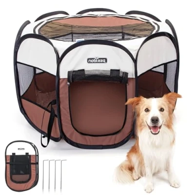 Nobleza Pop up Pet Playpen, Foldable Dog Playpen Portable Cat Puppy Play Pen, Outdoor Indoor Fence Breathable Carrier Kennel Soft Cage Tent for Rabbit Hamster Guinea Pig, Brown,36"x36"x23"