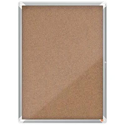 Lockable notice board with a hinged safety glass door and side lock enables the display of notices and memos ideal for home, office and school use Self-healing cork surface to securely pin and display notices on the noticeboard for increased organisation and visual communication, fitted with through corner wall mounting Mix and match with accessories from the Nobo range, 10 year guarantee
