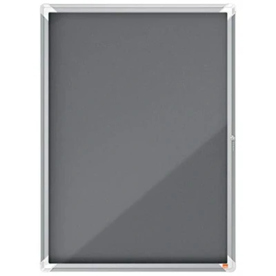 Lockable notice board with a hinged safety glass door and side lock enables the display of notices and memos ideal for home, office and school use Excellent felt surface to securely pin and display notices and memos on the noticeboard for increased organisation and visual communication, fitted with through corner wall mounting The lockable notice board is boarded by a modern and stylish aluminium trim with a 9 x A4 sheet capacity (709 x 970 mm) allowing increased space for documents, calendars and much more Mix and match with Nobo accessories, 10 year warranty, Tested according to DIN EN 14434 Contents: 1 x Nobo felt lockable noticeboard, dimensions: (W x H) 709 x 970 mm, Weight: 2.2 kg, grey, 1915330