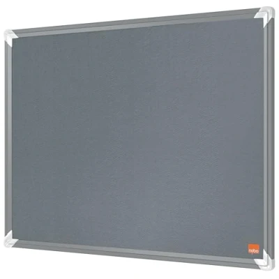 Nobo Felt Notice Board, 600 x 450 mm, Aluminium Trim, Corner Wall Mounting, Premium Plus, Grey, 1915194