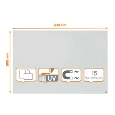 Nobo Infinity Frameless Magnetic Whiteboard, 900 x 600mm, 90 60cm, UV Cured Steel, Easy Clean White Board, White, 1915714