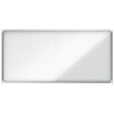 Nobo Magnetic Lockable Notice Board With Sliding Glass Door, 27 x A4, Premium Plus, White, 1902572