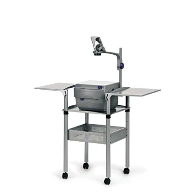 Nobo Overhead Projector Trolley with Adjustable Height and Folding Shelves, Steel Grey