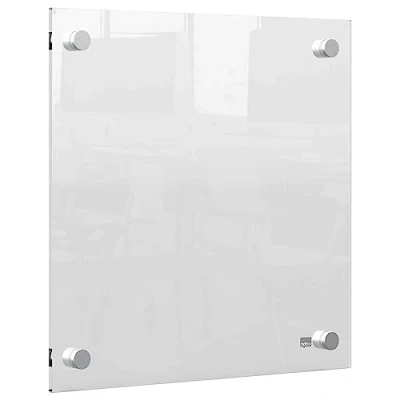 Crafted from durable clear acrylic, the Nobo Mini Whiteboard is wall-mounted for convenience, utilizing chic through corner mounts that add to its contemporary appeal. Its transparent surface enhances its versatility, allowing it to blend effortlessly into any background, whether in a home office, study, or creative space.