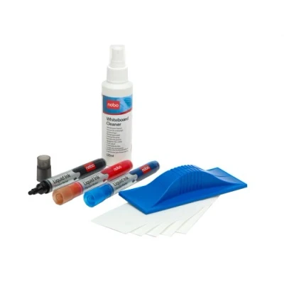 Nobo whiteboard starter kit Contains 3 Nobo dry markers, 50ml pump spray cleaner bottle and a mini drywipe eraser This kit has everything needed to write and maintain a drywipe board The Nobo Whiteboard Kit contains a range of whiteboard accessories for everyday use Just what you need to get started
