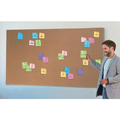 A Widescreen format cork notice board with a contemporary slim and unobtrusive frame offering a more accessible and expansive display surface.The InvisaMount™ system makes installation easy and fixings are neatly concealed behind the board. Excellent cork notice board surface to pin and display your notices.Size: 1880x1060mm.