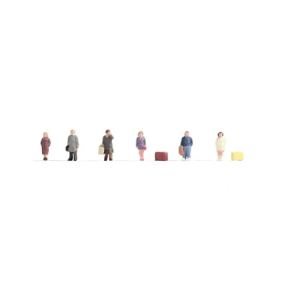 Noch® Travellers, 6 figures with large luggage, for model railway track TT...