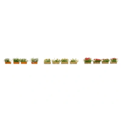NOCH® Flower Boxes Blooming Red, White and Yellow, 12 Hand Painted Plants for Gauge H0, Perfect Detail Decoration