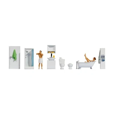 NOCH H0 Figure Theme World "Bathroom", Detailed Decoration for Model Railway