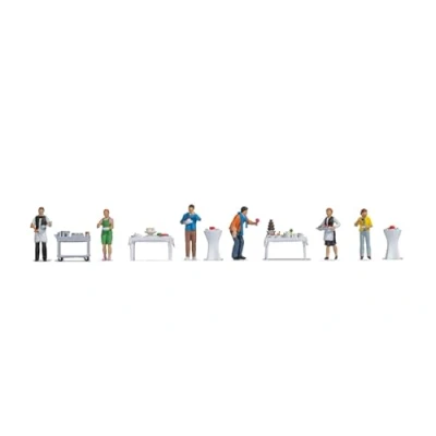 Comprehensive set: includes 4 guests, 2 waiters, 2 buffet tables, 1 buffet trolley and 2 standing tables for realistic scenes. ✅ HAND COLORATED: The figures are hand-coloured and made of high-quality plastic, ideal for your model landscape. Versatile: perfect for scenes such as weddings, anniversaries or parties in model systems in H0 scale. Details for your systems: add realistic figures to your diorama to make your miniature world more vivid. ✅ IDEAL FOR OCCASIONS: Whether it's a company party or holiday, the set is versatile to personalise any scene.