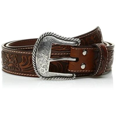 Nocona Boots mens Floral Embose Western Bucle Belt, Brown, 34