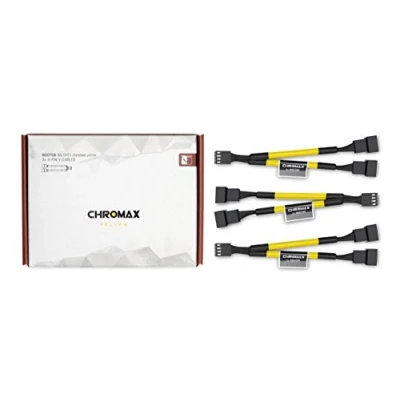3x NA-YC1 chromax.yellow y-cables for running two fans on one fan header Two 4-pin PWM fans can be controlled simultaneously on one PWM fan header 4-pin connector supports both 3-pin and 4-pin fans Yellow sleeving: ideal for creating PC builds with neat, focused aesthetics 6-year manufacturer’s warranty