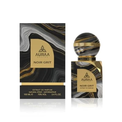 Noir Grit Extrait de Parfum 100ml by Auraa Desire Luxury Unisex Oriental Fragrance with Cypriol, Copaiba, Rose, Patchouli, Jasmine, Oud, and Musk Long Lasting Sophisticated Scent