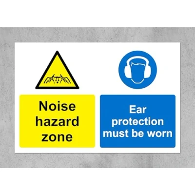 Noise Hazard Zone Ear Protection Must be Worn Safety Sign Self Adhesive Sticker 300mm x 200mm