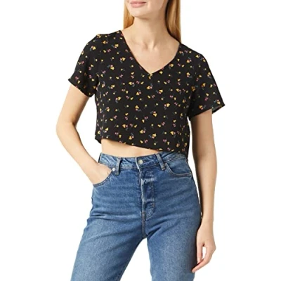 Noisy may Women's Nmclara S/S V Neck top S T Shirt, Black/AOP: Flower, XL