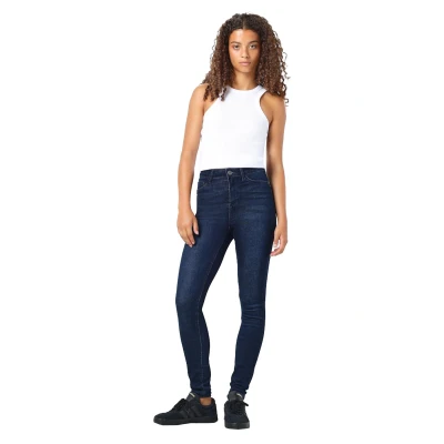 The Noisy May Women's Skinny Fit Jeans have a sleek and streamlined design that's ideal for any occasion. These jeans have a dark wash for a versatile and classy look. They are made of high-quality, flexible denim, ensuring comfort and flexibility with each movement. The high-waisted cut flatters your natural figure and ensures a snug, comfortable fit. They look well with a range of outfits and footwear, making them suitable for both casual and semi-formal settings. The Noisy May Women's Skinny Fit Jeans, which are machine washable for ease of upkeep, is a wardrobe essential for any fashion-conscious woman.