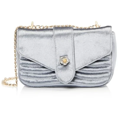 Velvet evening bag With decorative flower on the flap With magnetic closure Gold Link Chain Textile interior