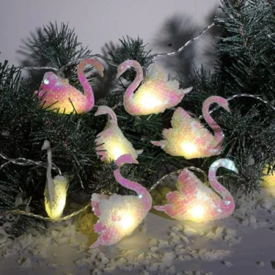WARM WHITE GLOW: Create a delightful ambiance with 20 warm white LEDs, adding a touch of elegance to your festive decorations SPELLBINDING SWAN DESIGN: These string lights feature sequin swans emitting a sparkling ethereal glow, perfect for indoor use BATTERY-POWERED: Conveniently powered by batteries with an indoor timer function for easy operation and efficiency VERSATILE DECORATION: Add a charming and festive touch to any room or event with these silver string lights featuring pearl sequin swans PREMIUM QUALITY: NOMA fairy lights are designed to bring joy and magic into your home, offering a delightful addition to any setting