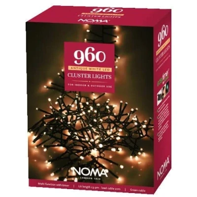 Noma 960 LED Cluster Christmas Tree Lights : Green Cable Multifunction Plug in with Timer Antique White 4921753