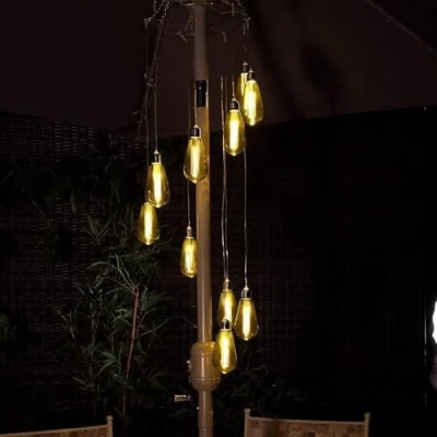 Vintage style smokey valve bulb chandelier with amber LEDs Energy efficient Fit and Forget technology for longer lasting life 4 x AA Alkaline batteries Hanging length - 95 cm