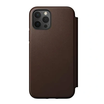 NOMAD Rugged Folio Wallet Phone Case for iPhone 12 Pro MagSafe Compatible, 10ft. Drop Protection, Horween Leather Rustic Brown
