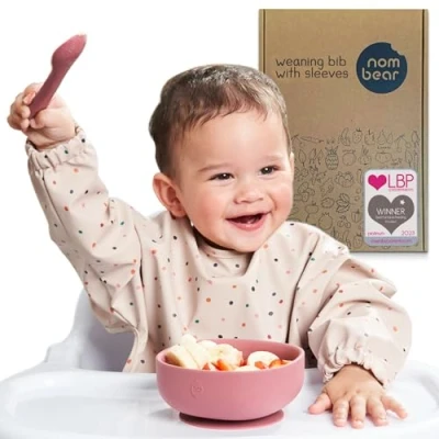 Nombear Baby Bibs with Sleeves for 6 24 Months, 1 Pack Easy Wipe Clean, Machine Washable Weaning Bib Sleeves, Waterproof Long Sleeve Bibs, Non Silicone and Coverall