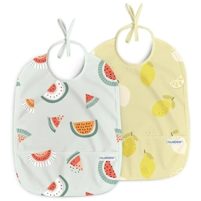 Nombear Easy Wipe Clean Sleeveless Baby Bibs 6 12 Months for Led Weaning Waterproof Feeding 18 Months,Toddler Food Apron, 2 Pack, Fruits