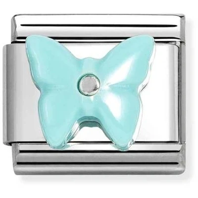 Bring a touch of nature to your charm bracelet with this adorable Nomination charm. Crafted with stainless steel, this charm features a 3D butterfly motif in turquoise. A charming addition to any charm collection, this charm is compatible with any Nomination composable jewellery.Stainless Steel3D Butterfly motifTurquoise butterflyComposable charm