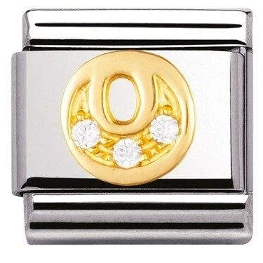 Nomination Cubic Zirconia O Charm A stunning letter O charm. Get creative and spell out personal messages with Nomination's collection of letter charms. Perfectly crafted in stainless steel and adorned with 18ct gold and glistening cubic zirconia crystals, wear these pieces proudly, as they are sure to dazzle.