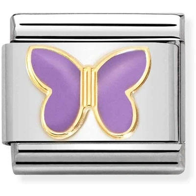 We love this colourful butterfly charm from Nomination, a sweet gift for all ages! Placed on a stainless steel base, a butterfly designed with 18k gold and lilac enamel wings will add a pop of colour to their charm collection. A stunning symbol of nature and growth. Stainless steel18k gold Butterfly charmEnamel detail