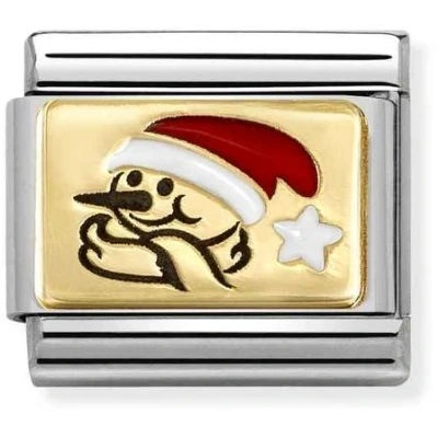 Celebrate the festive season with this Nomination charm. This merry charm features a snowman motif with a red and white enamel hat. An adorable Christmas gift choice, this charm would make a beautiful addition to your favourite charm bracelet. Stainless Steel Gold plate Snowman motif Red, white, and black enamel Classic Composable Collection