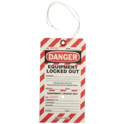 Non Adhesive Label in 2 Perforated Parts with Legend "Danger Equipment Locked Out", 101.60mm x 190.50mm, Red Black, Pack of 25