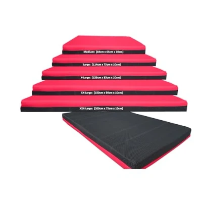 [GYMNASTICS CRASH MATS] are perfect for any professional or beginner gymnast for home, office or garden use, ideal for inside or outdoors practice. The 10cm Thick crash mats ensures safety for the gymnast and are perfect to use in any situation. The Crash Mats are designed to suit the different requirements of landing areas from Gymnastics, High Jump, Stunts, trapeze to name a few. [NON-SLIP BASE]. Kosiproducts Crash Mats are made with a Durable lightweight woven non-slip base for extra traction. Evenly spaced black beads are closely spaced onto the black woven base fabric which is perfect for the underside of floor placed crash mats. [THICK CRASH MATS] Made with 10cm Medium Firm, High Density Foam provides for a soft surface ensuring any falls, jumps, landing are cushioned giving extra safety for safe landing. Gymnastics & Sports crash mats are of the highest quality that will last for years. We manufacture all gym crash mats in our warehouse in Greater Manchester, UK with the greatest attention to detail and are amongst the most popular as well. [MATERIAL:] The gymnastics crash mats are made from 10cm Medium Firm, High Density foam, covered 235gsm 400 Denier Polyester PU, Water Resistant and easy to wipe down, store and carry. [DIMENSIONS;] Medium - 84cm x 68 cm x 10cm ; Large - 114cm x 80cm x 10cm; X-Large - 136cm x 84cm x 10cm; XX-Large 150cm x 90cm x 10cm, XXX-Large 200cm x 75cm x 10cm. [USES OF GYM MATS] Our thick gym mats are used widely by gymnastics professionals, would be gymnasts, schools, nurseries, home gyms, office gyms, fitness gyms as well indoors and outdoors. Some of the uses include: Gymnastics landing, Tumbling & fall protection, Aerial performance protection, Under indoor rock climbing walls. Training classes in law enforcement, police academies, fire fighting, and military combat training facilities. For fall protection during aerial training. Martial arts and other fight takedown training. For physical therapy and rehabilitation, crash and fall protection around exercise equipment or anywhere else where patients may fall and get injured during sessions. Training classes in law enforcement, police academies, fire fighting, and military combat training facilities. Nurseries, Schools, Playgroups to create a safe environment for children. Soundproofing upper floors if used for exercising, training, weightlifting. Martial arts and other fight takedown training. For physical therapy and rehabilitation, crash and fall protection around exercise equipment or anywhere else where patients may fall and get injured during sessions. Training classes in law enforcement, police academies, fire fighting, and military combat training facilities. Nurseries, Schools, Playgroups to create a safe environment for children. Soundproofing upper floors if used for exercising, training, weightlifting.