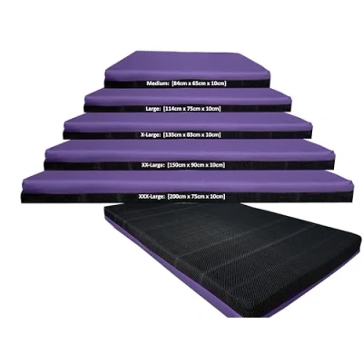 [GYMNASTICS CRASH MATS] are perfect for any professional or beginner gymnast for home, office or garden use, ideal for inside or outdoors practice. The 10cm Thick crash mats ensures safety for the gymnast and are perfect to use in any situation. The Crash Mats are designed to suit the different requirements of landing areas from Gymnastics, High Jump, Stunts, trapeze to name a few. [NON-SLIP BASE]. Kosiproducts Crash Mats are made with a Durable lightweight woven non-slip base for extra traction. Evenly spaced black beads are closely spaced onto the black woven base fabric which is perfect for the underside of floor placed crash mats. [THICK CRASH MATS] with its 5cm Medium Density Foam and 5cm Reconstituted foam within the mat provides for an ultra soft surface ensuring any falls, jumps, landing are cushioned giving extra safety for safe landing. Gymnastics & Sports crash mats are of the highest quality that will last for years. We manufacture all gym crash mats in our warehouse in Greater Manchester, UK with the greatest attention to detail and are amongst the most popular as well. [CRITICAL FALL HEIGHT] The pads have been tested to British Standard EN1177:2018 for their suitability for a critical fall height of 3 Metres. These Pads are designed to help reduce the impact of a fall by absorbing the shock and minimise the risk of Critical Injuries. [MATERIAL:] The gymnastics crash mats are made from Medium density 5cm and 5cm Reconstituted foam, covered 235gsm 400 Denier Polyester PU, Water Resistant and easy to wipe down, store and carry. [DIMENSIONS;] Medium - 84cm x 68 cm x 10cm ; Large - 114cm x 80cm x 10cm; X-Large - 136cm x 84cm x 10cm; XX-Large 150cm x 90cm x 10cm, XXX-Large 200cm x 75cm x 10cm. [USES OF GYM MATS] Our thick gym mats are used widely by gymnastics professionals, would be gymnasts, schools, nurseries, home gyms, office gyms, fitness gyms as well indoors and outdoors. Some of the uses include: Gymnastics landing, Tumbling & fall protection, Aerial performance protection, Under indoor rock climbing walls. Training classes in law enforcement, police academies, fire fighting, and military combat training facilities. For fall protection during aerial training. Martial arts and other fight takedown training. For physical therapy and rehabilitation, crash and fall protection around exercise equipment or anywhere else where patients may fall and get injured during sessions. Training classes in law enforcement, police academies, fire fighting, and military combat training facilities. Nurseries, Schools, Playgroups to create a safe environment for children. Soundproofing upper floors if used for exercising, training, weightlifting.