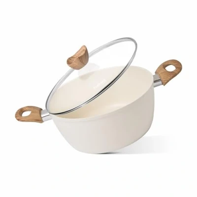 ROBUST CORE DESIGN: Built for durability and consistent performance, this stockpot by Nuovva features a solid core that heats quickly and evenly. It handles high-volume cooking with ease while resisting warping and wear. A dependable choice for everyday meals or big-batch cooking! TIMELESS CREAM EXTERIOR: The smooth cream-colored finish brings a calm, neutral elegance to your kitchen. Its subtle tone pairs beautifully with modern, farmhouse, or traditional decor styles. More than just stylish, the finish is scratch-resistant and designed to maintain its splendour over time! SMOOTH NON-STICK INTERIOR: Cooking and cleanup are hassle-free thanks to the PFOA-free non-stick interior coating of our premium stockpot. Foods glide out of the pot effortlessly with no sticking, scraping, or soaking required. Ideal for everything from hearty soups to delicate sauces! DEEP CAPACITY: This pot’s generous 24cm depth offers ample room for boiling, braising, and slow cooking without crowding ingredients. Great for family dinners, meal prep, or hosting, the tall walls help reduce mess and spatter. It’s your go-to when cooking large portions with ease! STOVETOP VERSATILITY: Safe for use on all stovetops—including induction, the cream stockpot by Nuovva includes a vented glass lid which allows you to check progress while locking in heat and moisture!, Weight: 4.299014109 pounds, Manufacturer: Nuovva